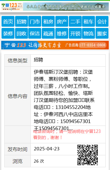 伊春塔斯汀汉堡招聘:汉堡师傅、裹粉师傅、等职位,过年三薪,八小时工作制。团队氛围轻松、愉快、塔斯汀汉堡期待您的加盟❗️联系电话☎️:13104552204地址:伊春河西八中店店里本地电话☎️:15094567301王15094567301 【电话咨询时,请一定说明在伊春信息网看到的,谢谢!】 |