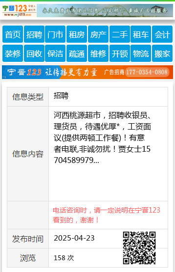 河西桃源超市,招聘收银员、理货员,待遇优厚*,工资面议(提供两顿工作餐)!有意者电联,非诚勿扰!贾女士15704589979 【电话咨询时,请一定说明在伊春信息网看到的,谢谢!】 |