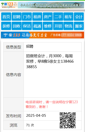 招做班会计,月3000,每周双修,早8晚5徐女士13846638855