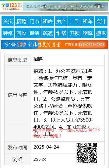 招聘:1、办公室资料员1名,熟练操作电脑,具有一定文字、表格编辑能力,限女性,年龄45岁以下,无节假日。2、公路监理员,具有公路工程经验,单位提供吃住,年龄50岁以下,无节假日。3、以上人员工资3500-4000之间。4、实习生也可以。王15804581193 【电话咨询时,请一定说明在伊春信息网看到的,谢谢!】 |