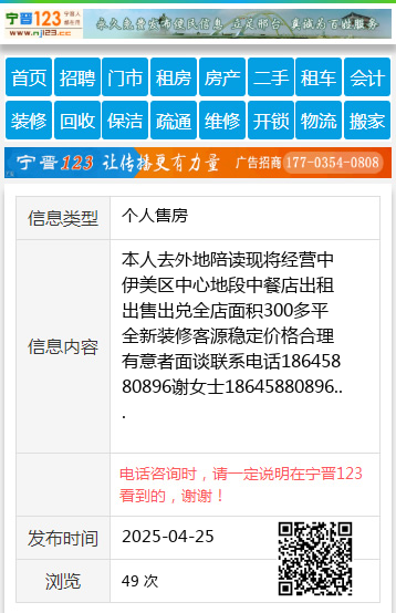 本人去外地陪读现将经营中伊美区中心地段中餐店出租出售出兑全店面积300多平全新装修客源稳定价格合理有意者面谈联系电话18645880896谢女士18645880896 【电话咨询时,请一定说明在伊春信息网看到的,谢谢!】 |