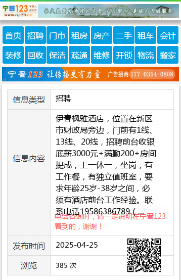 伊春枫雅酒店,位置在新区市财政局旁边,门前有1线、13线、20线,招聘前台收银底薪3000元+满勤200+房间提成,上一休一,坐岗,有工作餐,有独立值班室,要求年龄25岁-38岁之间,必须有酒店前台工作经验。联系电话19586386789(微信同号)董先生19586386789 【电话咨询时,请一定说明在伊春信息网看到的,谢谢!】 |