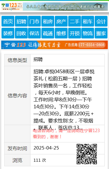 招聘:卓悦0458街区一层卓悦茶礼(松韵五期一层)招聘茶叶销售员一名,工作轻松,每天6小时,早晚倒班。工作时间:早8点30分—下午14点30分。下午14点30分—20点30分。底薪2200元+提成。要求性别:女,不吸烟。联系人,苍店总:13845498010联系苍18345891731 【电话咨询时,请一定说明在伊春信息网看到的,谢谢!】 |