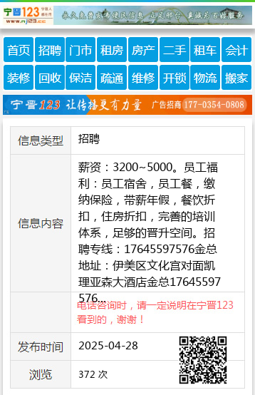 薪资:3200~5000。员工福利:员工宿舍,员工餐,缴纳保险,带薪年假,餐饮折扣,住房折扣,完善的培训体系,足够的晋升空间。招聘专线:17645597576金总地址:伊美区文化宫对面凯理亚森大酒店金总17645597576 【电话咨询时,请一定说明在伊春信息网看到的,谢谢!】 |