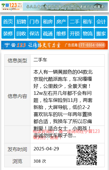 本人有一辆黄颜色的04款北京现代酷派跑车,车况嘎嘎好,公里数少,全景天窗!12w左右开几年都不会有问题,检车保险到11月,两套新胎,大屏导航,低价2-2喜欢玩车的玩一年两年置换都合适,我换车了所以忍痛割爱!适合女士,小男孩!非诚勿扰车贩子勿扰!吴先生16645833339 【电话咨询时,请一定说明在伊春信息网看到的,谢谢!】 |