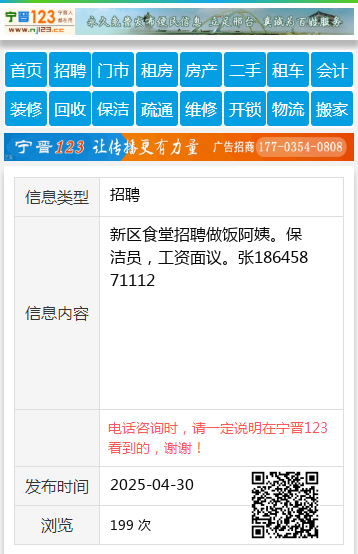 新区食堂招聘做饭阿姨。保洁员,工资面议。张18645871112