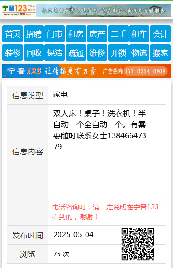 双人床!桌子!洗衣机!半自动一个全自动一个。有需要随时联系女士13846647379