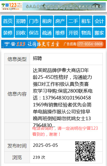 达芙妮品牌伊春大商店⭐年龄25-45⭐性格好,沟通能力强⭐对工作积极认真负责喜欢学习导购:保底2800联系电话:1379648301019604581969有销售经验者优先会简单电脑操作服从公司安排早晚两班倒短期勿扰姚女士13796483010 【电话咨询时,请一定说明在伊春信息网看到的,谢谢!】 |