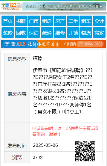 伊春市《和记馅饼诚聘》????????后厨女工2名????????前厅打菜员:1名????????????收银员1名????????????切墩1名????????保洁员1名????????????粥师傅1名(男女不限)⏰钟点工1名郭经理13089598966(微信同步)王经理13039661889(微信同步)王13039661889 【电话咨询时,请一定说明在伊春信息网看到的,谢谢!】 |