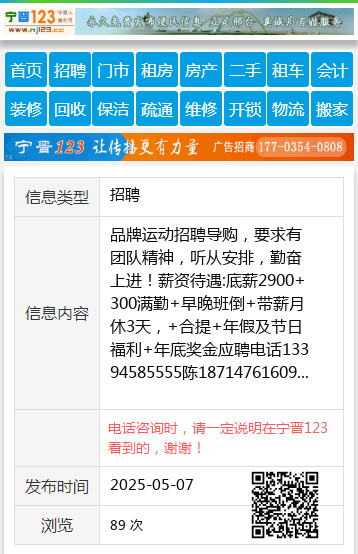 品牌运动招聘导购,要求有团队精神,听从安排,勤奋上进!薪资待遇:底薪2900+300满勤+早晚班倒+带薪月休3天,+合提+年假及节日福利+年底奖金应聘电话13394585555陈18714761609 【电话咨询时,请一定说明在伊春信息网看到的,谢谢!】 |