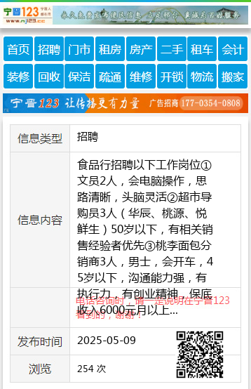 食品行招聘以下工作岗位①文员2人,会电脑操作,思路清晰,头脑灵活②超市导购员3人(华辰、桃源、悦鲜生)50岁以下,有相关销售经验者优先③桃李面包分销商3人,男士,会开车,45岁以下,沟通能力强,有执行力,有创业精神,保底收入6000元月以上工作岗位要求长期稳定工作,有经验者优先王先生18249804455 【电话咨询时,请一定说明在伊春信息网看到的,谢谢!】 |