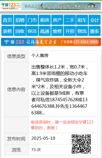 出售整体长1.2米,宽0.7米,高1.9米带雨棚的移动小吃车,煤气双炸锅,全新大伞2米*2米,及相关设备小件,以上设备都是9成新,有意者可私信18745457628或13644676388.孙先生13644676388 【电话咨询时,请一定说明在伊春信息网看到的,谢谢!】 |