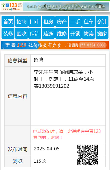 李先生牛肉面招聘凉菜,小时工,洗碗工,11点至14点姜13039691202