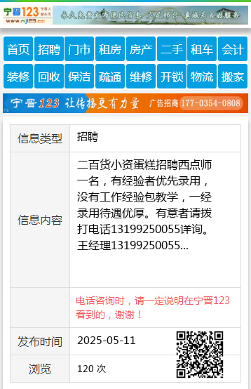 二百货小资蛋糕招聘西点师一名,有经验者优先录用,没有工作经验包教学,一经录用待遇优厚。有意者请拨打电话13199250055详询。王经理13199250055 【电话咨询时,请一定说明在伊春信息网看到的,谢谢!】 |
