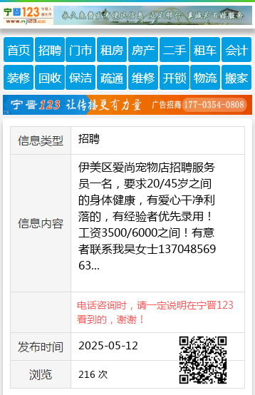 伊美区爱尚宠物店招聘服务员一名,要求20/45岁之间的身体健康,有爱心干净利落的,有经验者优先录用!工资3500/6000之间!有意者联系我吴女士13704856963 【电话咨询时,请一定说明在伊春信息网看到的,谢谢!】 |