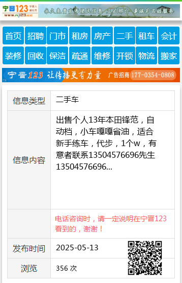 出售个人13年本田锋范,自动档,小车嘎嘎省油,适合新手练车,代步,1个w,有意者联系13504576696先生13504576696 【电话咨询时,请一定说明在伊春信息网看到的,谢谢!】 |