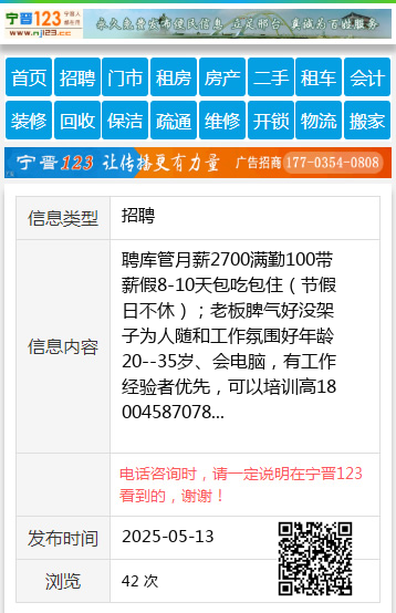 聘库管月薪2700满勤100带薪假8-10天包吃包住(节假日不休);老板脾气好没架子为人随和工作氛围好年龄20--35岁、会电脑,有工作经验者优先,可以培训高18004587078 【电话咨询时,请一定说明在伊春信息网看到的,谢谢!】 |
