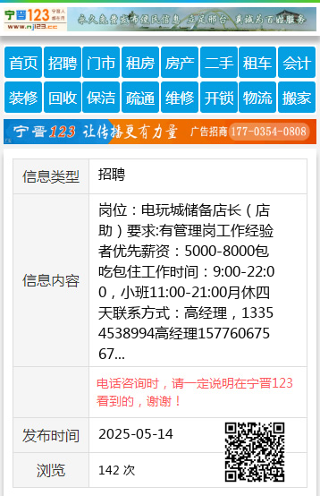 岗位:电玩城储备店长(店助)要求:有管理岗工作经验者优先薪资:5000-8000包吃包住工作时间:9:00-22:00,小班11:00-21:00月休四天联系方式:高经理,13354538994高经理15776067567 【电话咨询时,请一定说明在伊春信息网看到的,谢谢!】 |