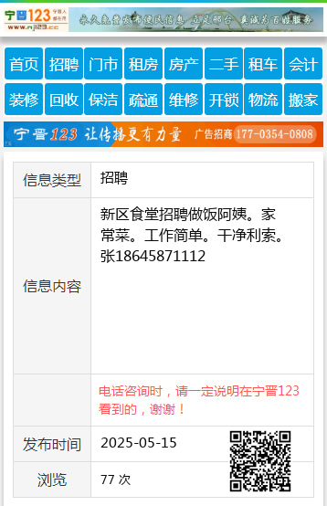 新区食堂招聘做饭阿姨。家常菜。工作简单。干净利索。张18645871112