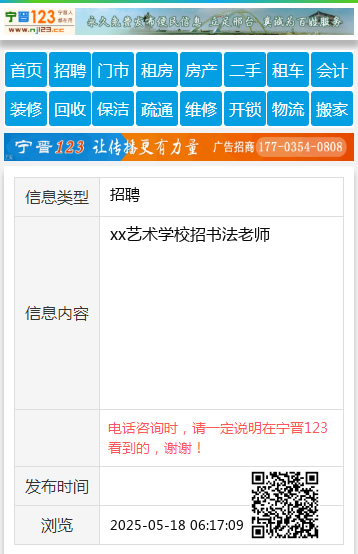 xx艺术学校招书法老师