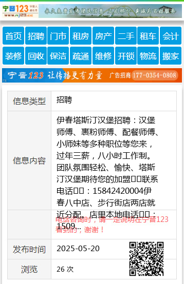 伊春塔斯汀汉堡招聘:汉堡师傅、裹粉师傅、配餐师傅、小师妹等多种职位等您来,过年三薪,八小时工作制。团队氛围轻松、愉快、塔斯汀汉堡期待您的加盟❗️联系电话☎️:15842420004伊春八中店、步行街店两店就近分配。店里本地电话☎️:15094567301王15094567301 【电话咨询时,请一定说明在伊春信息网看到的,谢谢!】 |