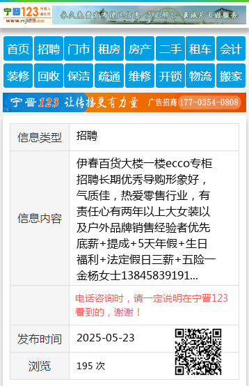 伊春百货大楼一楼ecco专柜招聘长期优秀导购形象好,气质佳,热爱零售行业,有责任心有两年以上大女装以及户外品牌销售经验者优先底薪+提成+5天年假+生日福利+法定假日三薪+五险一金杨女士13845839191 【电话咨询时,请一定说明在伊春信息网看到的,谢谢!】 |